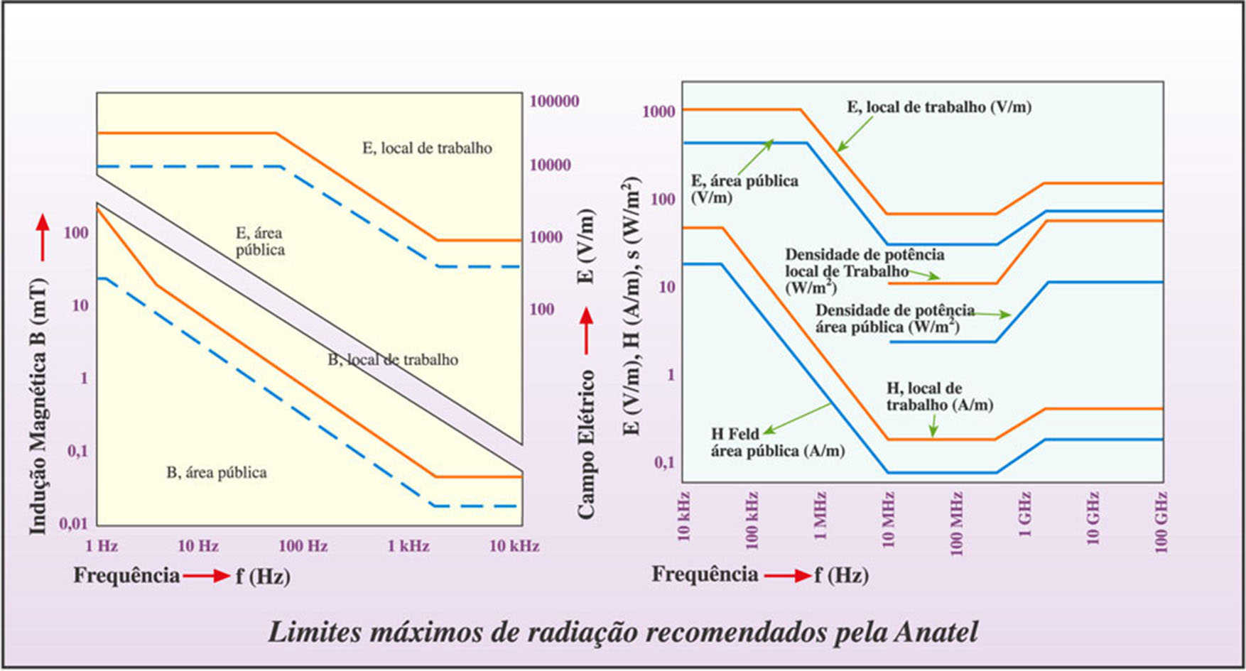 No Ionizantes. A continuación hay un gráfico con los límites máximos de radiación electromagnética recomendada, divulgado por la Anatel sobre el grado de interferencia y la tolerancia máxima de exposición de los teléfonos celulares y microondas en general: