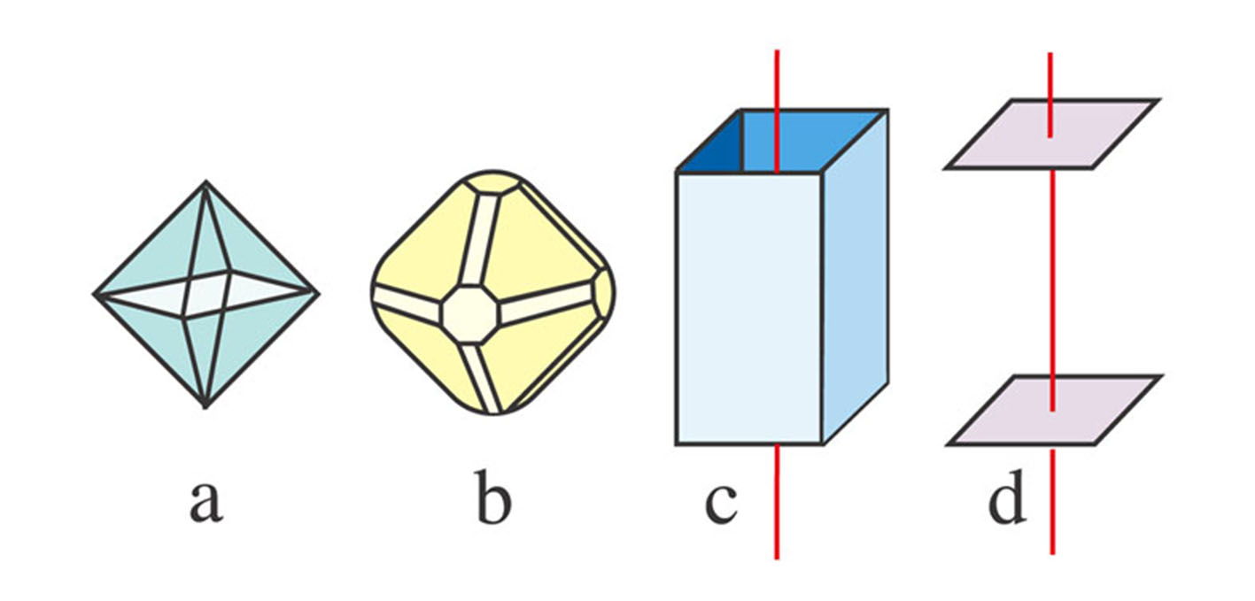 Los cristales poseen simetrías variables, algunos tienen un plano de reflexión, un eje binario o un eje de simetría; otros también presentan el mismo eje de simetría, pero pueden llegar a tener nueve planos de reflexión, cuatro ejes ternarios, tres ejes cuaternarios ¡y seis ejes binarios! Eso genera una ecuación extremadamente compleja en sus simetrías.