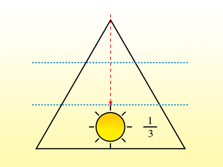 Exemple : une piramide, quelle que soit sa dimension, possède un centre actif à un tiers de la hauteur verticale qui passe par sa pointe.