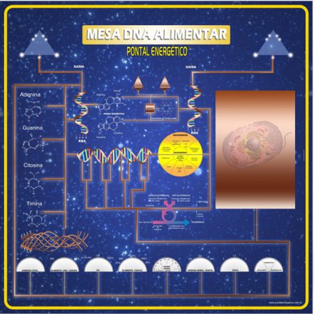 A MESA DNA ALIMENTAR do Pontal Energético é uma poderosa e exclusiva ferramenta. Com sua utilização é possível descobrir através do conhecimento transferido pelos seres das Híades, quais os alimentos que se adequam ao campo energético da pessoa, os que podem sofrer modificações em sua estrutura bioenergética e somática, provocando uma série de doenças físicas ou emocionais. A mesa propõe uma modulação da saúde através do alimento ideal para a pessoa, ou seja, o que tem ressonâncias positivas com suas moléculas para preservação do seu DNA.