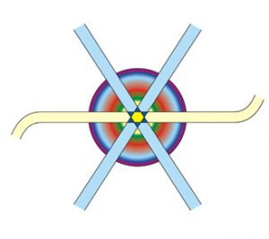 Estas pirâmides, tanto a menor quanto a maior, estão ajustadas em uma mesma linha centro – vertical, ou seja, as duas pontas estão ajustadas em um mesmo eixo e unidas entre si, permitindo que os vértices de energias Cósmicas sigam um mesmo fluxo e caminhe concentrada pela pirâmide menor, a qual estará apontada para o centro dos símbolos do Labirinto de Chartres e o Radiônico, que têm como finalidade ampliar e filtrar totalmente as vibrações dessas energias tanto quando se capta ou se doa qualquer forma delas, permitindo que ao se captar ou transmutar vibrações de Energias Cósmicas, através das pirâmides, estas energias passem a ser recebidas ou doadas puras, sem nenhum tipo de Contaminação de Campo Parasitário, Telúrica, Bio Energética, Quântica ou Energética somente.