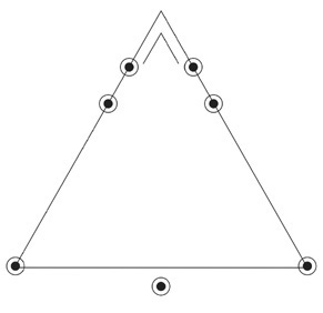 Ao observar-se o desenho destas estrelas em sua forma triangular e fazendo a ligação destes pontos, invertendo-se o desenho em 180º, tem-se a representação exata do PONTAL ENERGÉTICO.