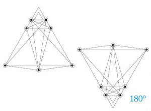 Quanto maior o “SPIN” menor a fração de uma rotação completa para a partícula voltar a ter a aparência inicial. Notável, entretanto, é que certas partículas voltam à mesma aparência se você girá-las em duas rotações completas – “SPIN 2” (reveja o desenho triangular das Híades, quando é necessário girar uma vez, ou 180º, para se ter o desenho do PONTAL ENERGÉTICO, exatamente um “SPIN 2”).