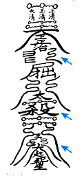 Desenhos Taoístas da “Fórmula Mágica da Cura”. Ao analisar a figura a certa distância, tem-se a impressão de que mãos seguram um fluxo de energia vinda do alto.