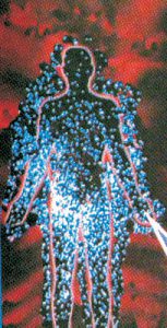 Foto representativa do Biocampo neutrínico, formado por um campo de neutrinos que envolvem e incorporam o corpo humano, esse biocampo é formado por partículas subatômicas. Ref.- Mattos, Dr. Victor – Medicina Quântica, Editora Corpo Mente
